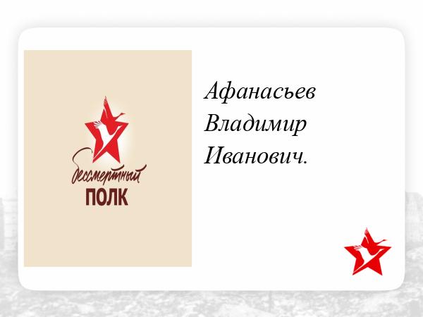Родился в 1925 году. Пошёл на войну в 16 лет. Был рядовым. Получил много наград, одна из которых Орден Красной Звезды. Умер в 2005 году.