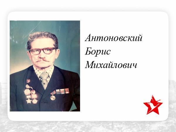 Антоновский Борис Михайлович был призван в августе 1941 года в состав 263 стрелковой дивизии.