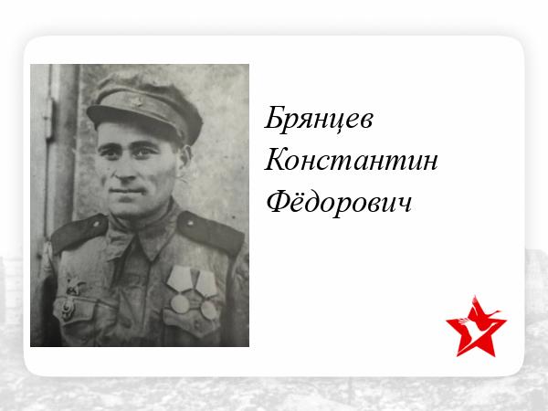Мой прапрадед, Брянцев Константин Фёдорович, родился в 1903 году в городе Черкесск, где окончил 5 классов Средней школы в 1916 году. До Великой Отечественной Войны работал шофёром 3-го класса.