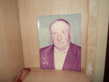Воевал в 51-ой армии сначала Южного затем 1-го Украинского и далее 1-го,2-го,и 3-го Прибалтийских фронтов.Освобождал Донбасс город Мелитополь.Далее взятие Перекопа форсирование залива Сиваш и освобождение полуострова Крым. Получил осколочное ранение и тяжелую контузию под Севастополем при корректировке огня по немецким кораблям а бывшие с ним товарищи все погибли.После госпиталя воевал в Прибалтике особенно ему запомнились бои за город Шауляй в Литве.Учавствовал в Рижской операции.В боях за города Валмеер и Смилтене,Операции Курляндский котел.Принимал участие во взятии города Кенигсберг. Победу встретил восточнее реки Эльба при выполнении операции по сдерживанию 12-ой немецкой армии генерала В.Венке пытавшевося прорваться на подступах к Потсдаму на помощь окруженному Берлину. Дабы не попасть в плен к русским генерал В.Венке сдался со всей армией американским войскам.С войны отец вернулся с 4-мя боевыми медалями две из которых медали за отвагу.По окончанию войны отей ещё дослуживал в армии,после чего началась мирная жизнь.