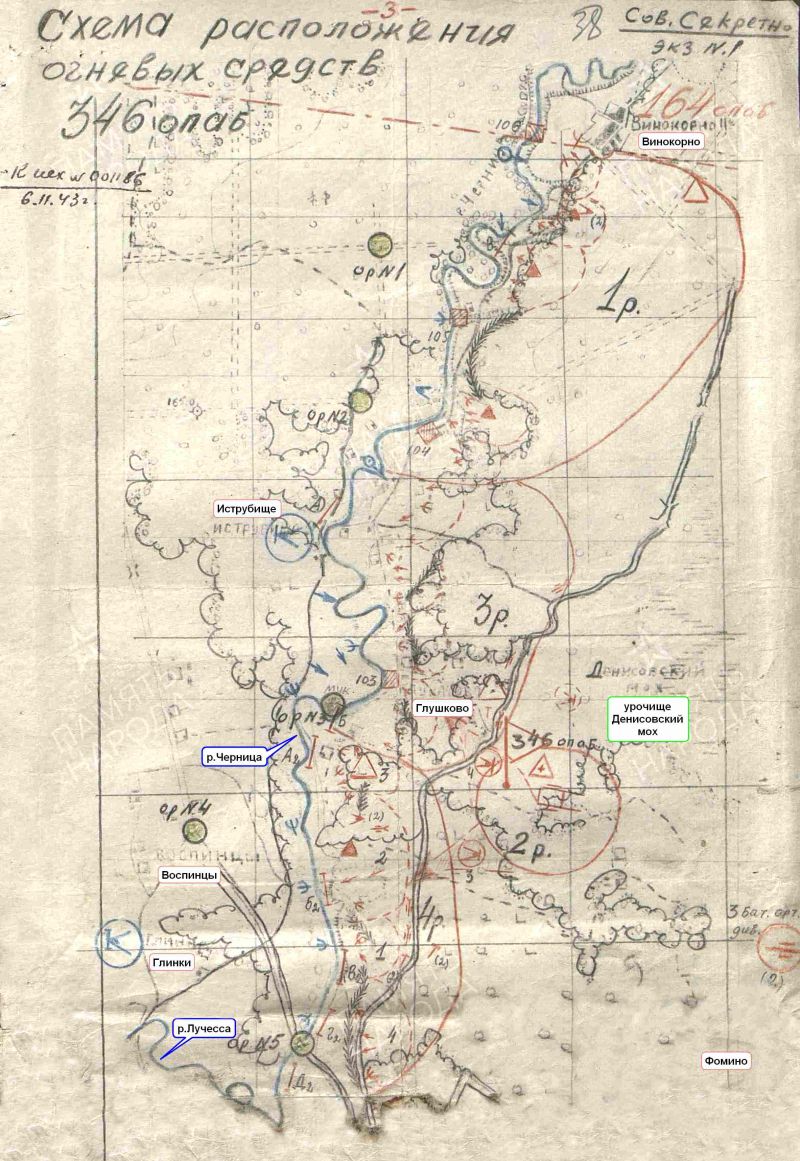 С 12 октября 1943г. части 152 укрепленного района занимали рубеж обороны юго-восточнее Бабиновичи, по восточному берегу рек Верхита, Черница.