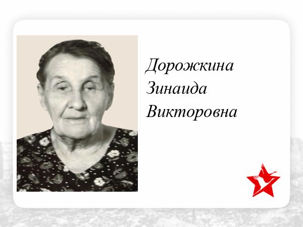 Со своим управлением Зинаида Викторовна дошла до Германии. Ей даже объявили благодарность и премировали ценным подарком за образцовое выполнение заданий командования. Было это в городе Штольценхагене 8 марта 1946 года. А в июле того же года вольнонаемную машинистку 10 УВПС тов. Дорожкину З.В. приказом по Управлению освободили от работы и направили по месту жительства.