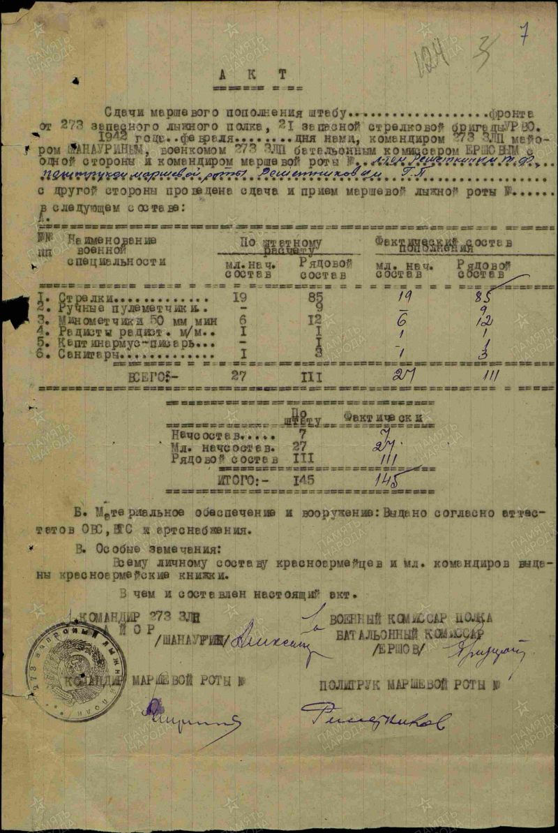К моменту расформирования в лыжных батальонах и бригадах обычно оставалось по 40-80 бойцов. Похоронки домой высылались редко, документы по учету личного состава и боевые документы часто терялись, т.к. многие подразделения погибали вместе со штабами.
