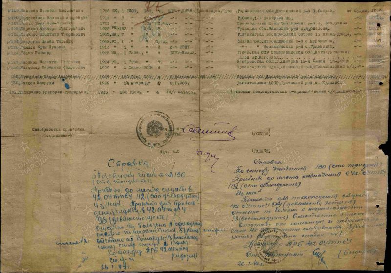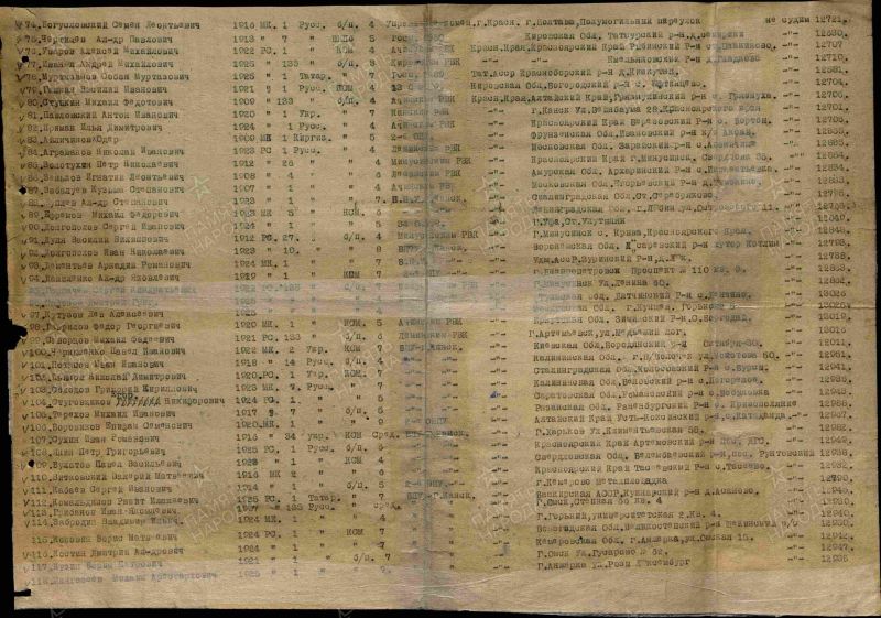 25 декабря 1943 г. вместе с 4-мя земляками отправлен Минусинским РВК в распоряжение Начальника Пересыльного Пункта г. Красноярск.