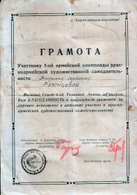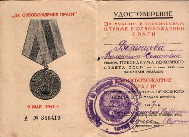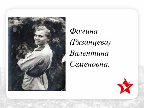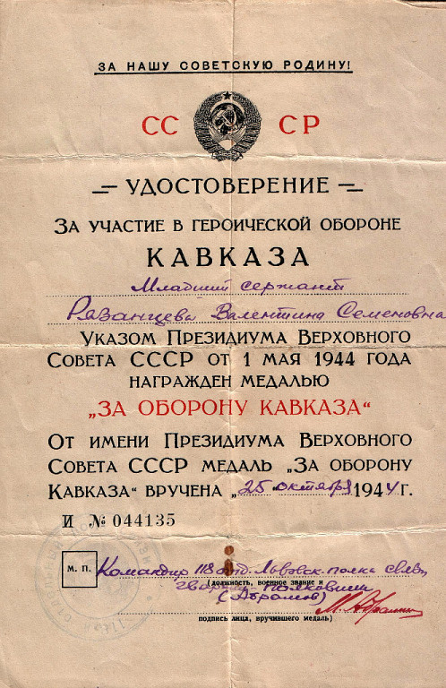 1923 г.р. Призвана 21 января 1942 года.Прошла от Моздока до Сталинграда, а затем до Праги и Вены. Демобилизована 25 августа 1945 года.