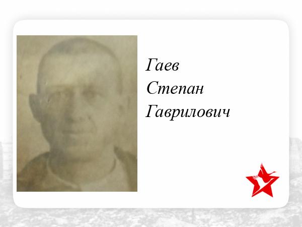 Гаев Степан Гаврилович,1902 г. р. . По профессии - кузнец. В 19.07.1942 был призван. В декабре 1942 г. пропал без вести.