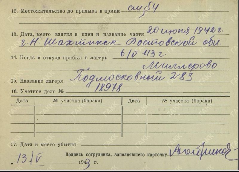 Ростовская область, г. Новошахтинск (с 20.06.1942 по 02.1943)