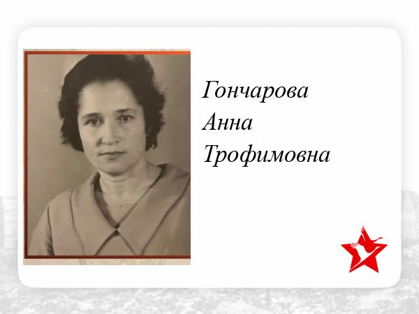 Первая девушка - доброволец Воронежской области. На фронт ушла в 18 лет. Военная специальность радист - разведчик. Победу встретила в Западной Украине, в г.Львове. Участвовала в форсировании Днепра.