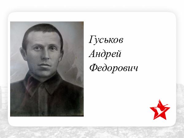 Гуськов Андрей Федорович призван на войну в 1941г из с Теликовка Духовницкого района Саратовской области по рассказам дяди он дошел до Берлина , но домой не вернулся по не известным нам причинам, т.к. бабушки уже нет, писем не сохранилось.В архивах данных мы не нашли , но не смотря ни на что хочется сохранить память в сердцах потомков и слова благодарности за Великую Победу.Чтим помним и надеемся что будут помнить наши дети.