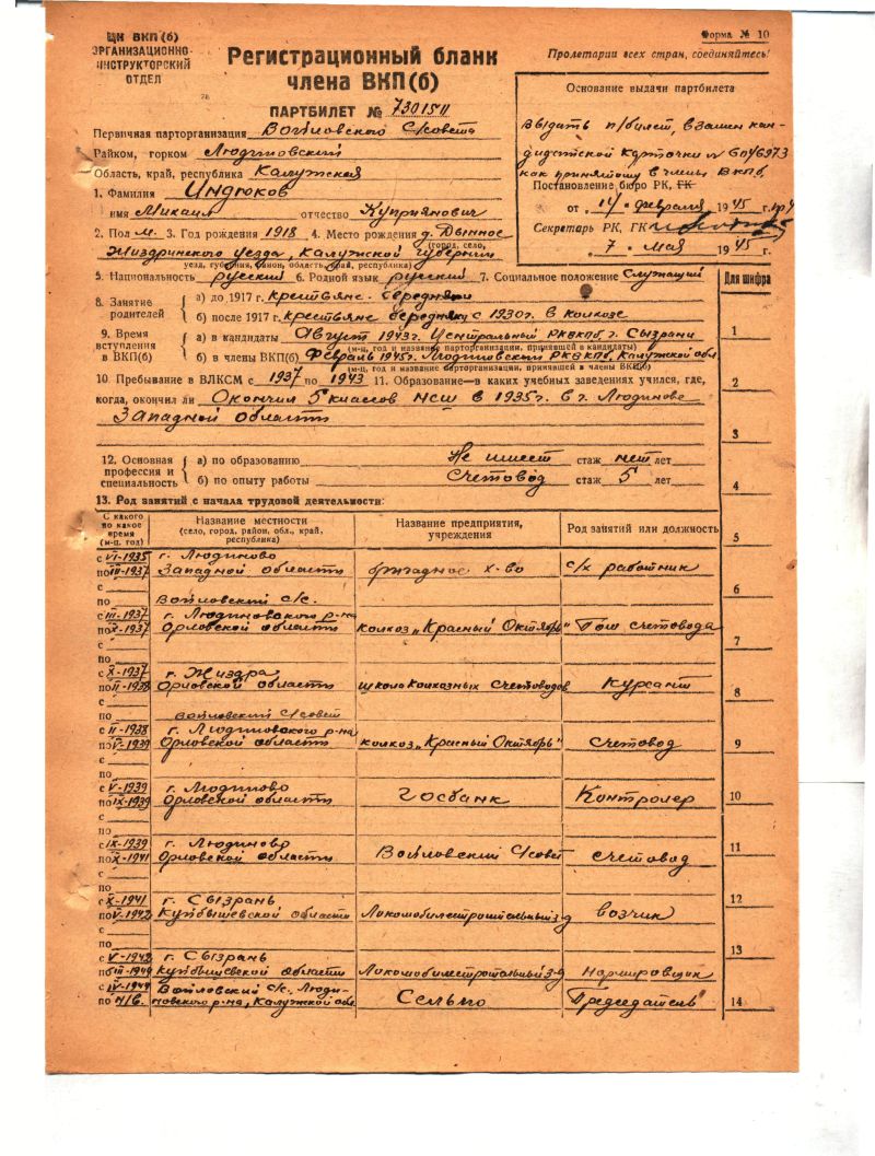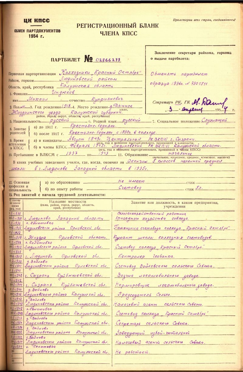Работал в Людиновском р д Войлово в к-е Красный Октябрь