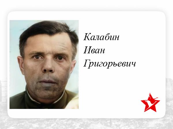 Командир взвода зенитчиков и политрук, Калабин Иван Григорьевич, за проявленное мужество в борьбе с немецко-фашистскими захватчиками и за разгром японской Квантунской армии был награжден медалями: