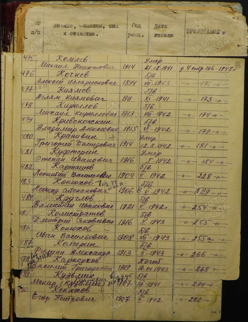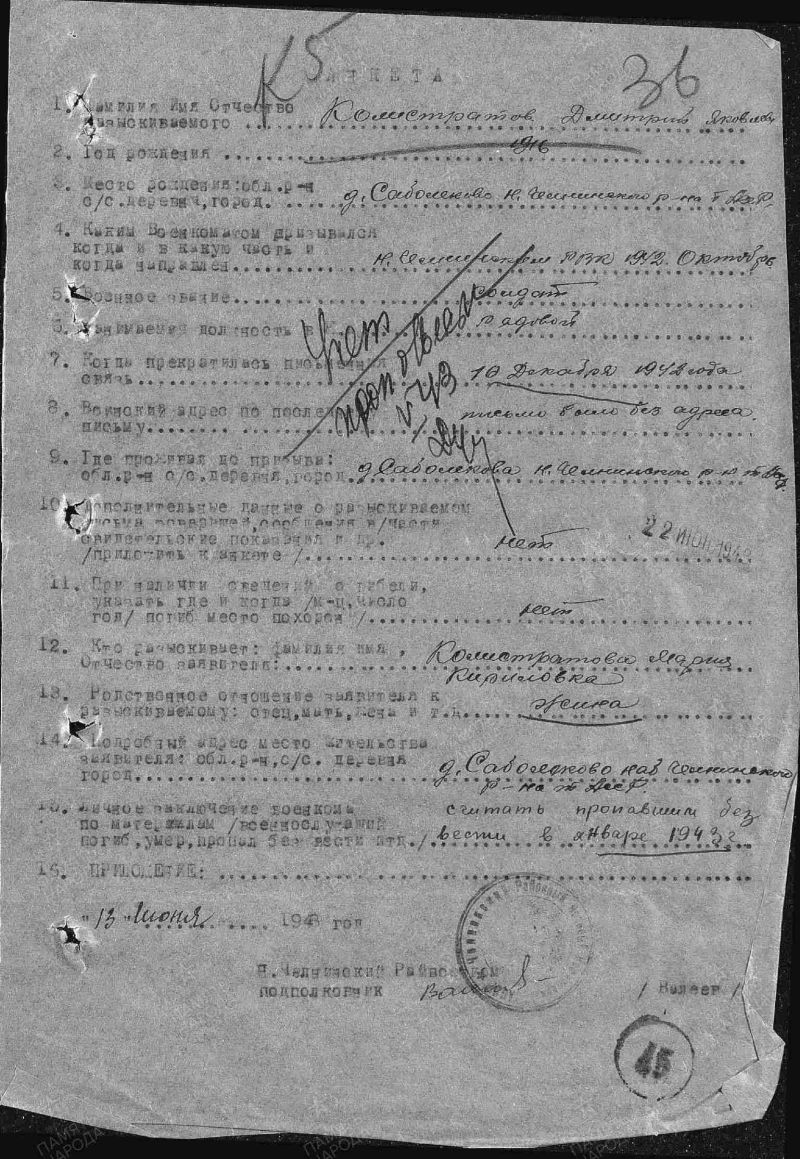 Дата выбытия 05.1943. Причина выбытия: пропал без вести.