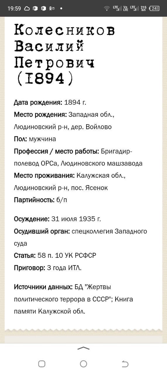 До войны работал председателем колхоза "Красной Октябрь" Людиновского р