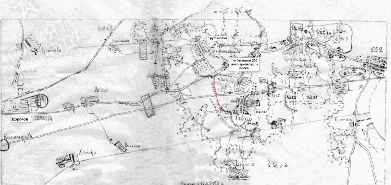 К 03 ноября 1941г. полк оседлал дорогу на Турфановку- между Можайским шоссе и Турфановкой. 1 стрелковый батальон полка занимал Ляхово. Танки и пехота противника, прорвав передний край нашей обороны, продвигалась в направлении Ляхово. Полк имел задачу- не пропустить врага за Ляхово.