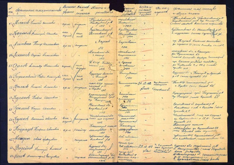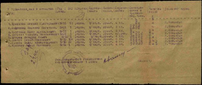 Кулаков Павел Иванович, 1912 г. р. Место рождения Красноярский край, Богучанский район, д. Пинчуга. Призван Енисейским РВК в апреле 1942 года. Краснофлотец. Рулевой. В/ч ШС БО ТОФ. Передислоцирован на Западный фронт в октябре 1942 года. Стрелок. В/ч 45 мсбр. Убит в бою 26.12.1942 года. Похоронен Сталинградская область, Кагановичский район, д. Дальне Подгорская (граничит с Ростовской областью, в списках безвозвратных потерь отмечена как Ростовская область). Внесен в списки безвозвратных потерь по Чернышковскому району Сталинградской области, в районе х. Ярской, как погибший 3.01.1943 года.