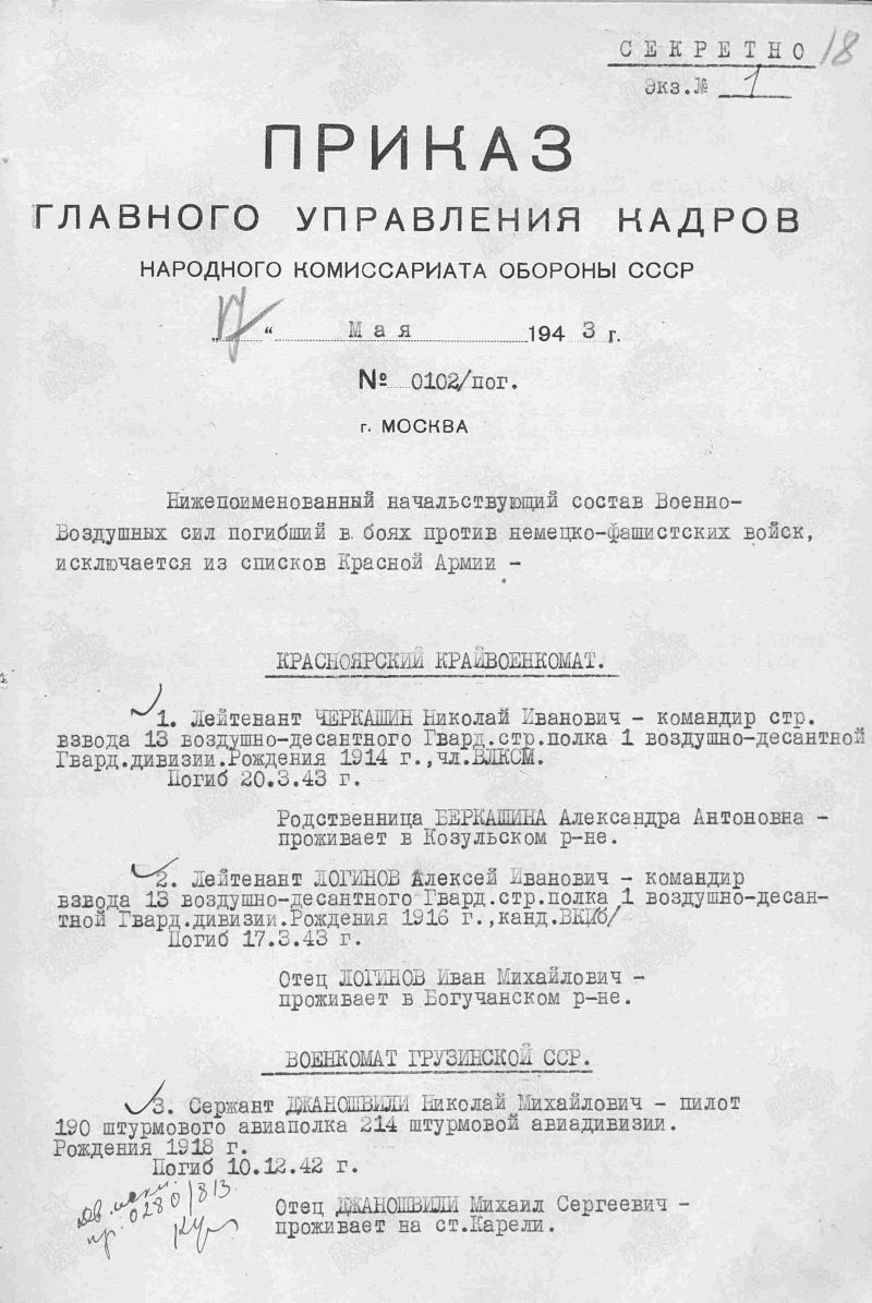 Логинов Алексей Иванович, 1916 г. р. Место рождения Красноярский край, Богучанский район, д. Бедоба. Кадровый военный. Лейтенант. Командир взвода. В/ч 13 гв. вдп 1 гв. вдд. Погиб, подорвался на мине 17.03.1943 года. Похоронен Ленинградская область, Старорусский район, д. Черенчицы. Увековечен. Отец Логинов Иван Михайлович.