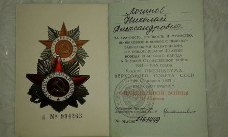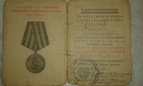 Наш дедушка родом из Ульяновской области, деревня Красная сосна. Службу начал с 1935 года. С 1942 по 1946 годы служил в рядах Советской армии.В 1942 - 1943 годах в составе 57 особой стрелковой бригады, 10 стрелкового корпуса, 37 армии, участвовал в боях за освобождение Кавказа. Принимал участие в освобождении города Малгобек республики Ингушетия, Кавказских Минеральных Вод, города Армавир Краснодарского края. Во время ожесточённых боев в районе города Славянск на Кубани во время наступления 5 апреля 1943 года, был ранен. После ранения продолжил службу в 19-й стрелковой бригаде. После войны продолжал службу в СМЕРШЕ до 1951 года (выявляли и уничтожали банд.группы на территории государства). Службу закончил в войсках МВД (ветеран МВД). Легендарный, очень немногословный человек. Дети, внуки и правнуки помнят, гордятся и стараются быть достойными нашего дорогого ветерана.