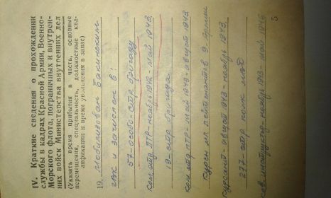 май 1943 - август 1943 года 19-стрелковая бригада командир отделения ПТР ;