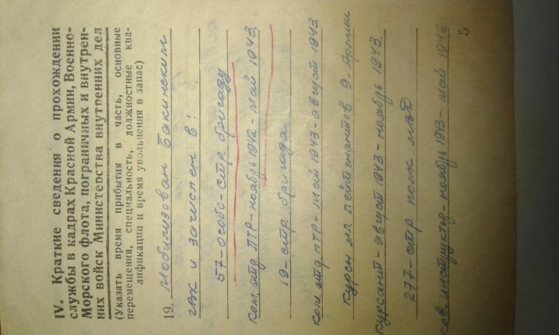 ноябрь 1942 - май 1943 года 57-особая стрелковая бригада командир отделения ПТР ;