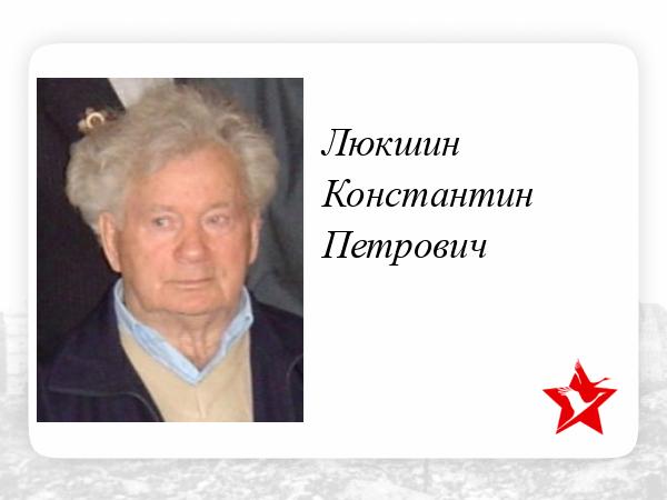 ЛЮКШИН КОНСТАНТИН ПЕТРОВИЧ родился 16 января 1921года в г. Саратов, Саратовская обл. В Красную Армию призван 22 мая 1940 (по другим данным 1939) года Саратовским ГВК Саратовской обл.