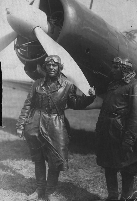 “227 сбап. 1941. Слева направо: Командир полковник Турыкин Григорий Прокофьевич (27.09.1903-12.08.1947, уволен в запас) и командир 2 авиационной эскадрильи майор Маков Константин Иванович (22.05.1902-2.09.1941, погиб).”;