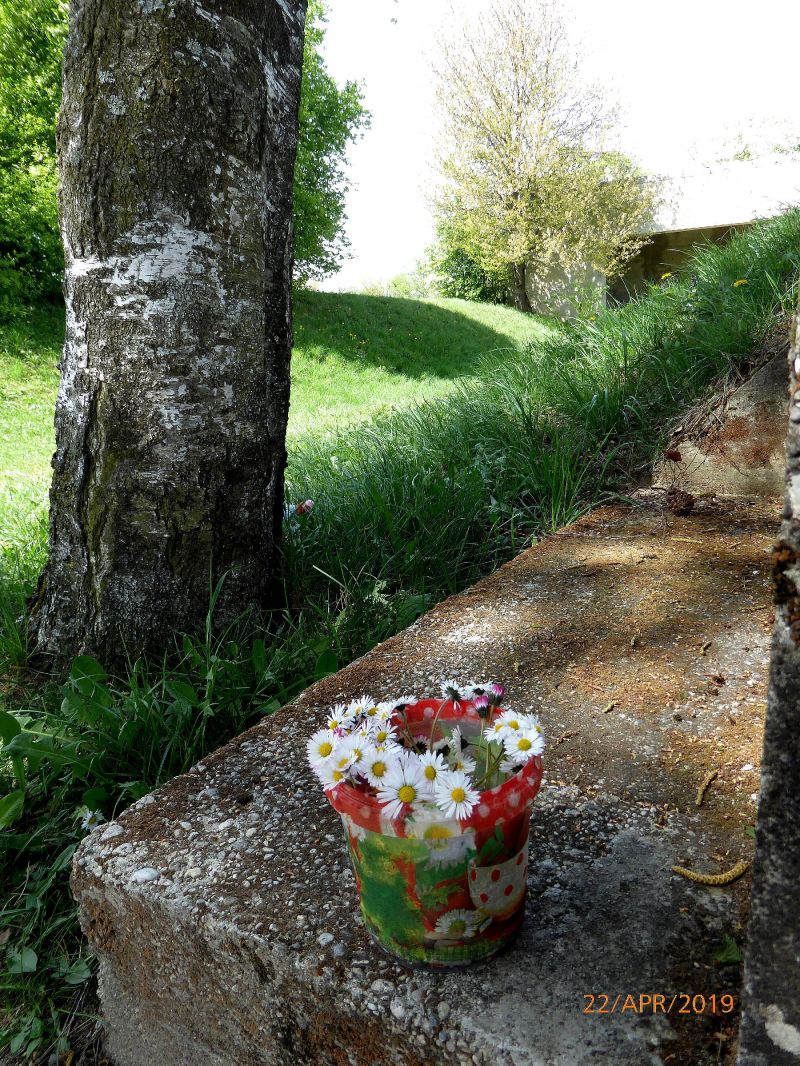 авторское описание: “Позади бетонных ниш, в маленьком помещении, служившем раздевалкой и мертвецкой, приговоренных к расстрелу заставляли догола раздеваться, далее наручниками приковывали к вбитым в землю столбам, находящимися внутри бетонной ниши. По живым мишеням эсэсовцы начинали «учебную стрельбу». Погибших ненадолго складывали в мертвецкой, затем отвозили обратно в лагерь Дахау, где их тела сжигали в крематории.”;