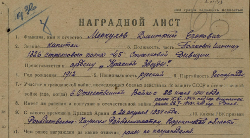 Дед был кадровым военным. В армии с 1934 года. Умер от ран 5 мая 1945 года.