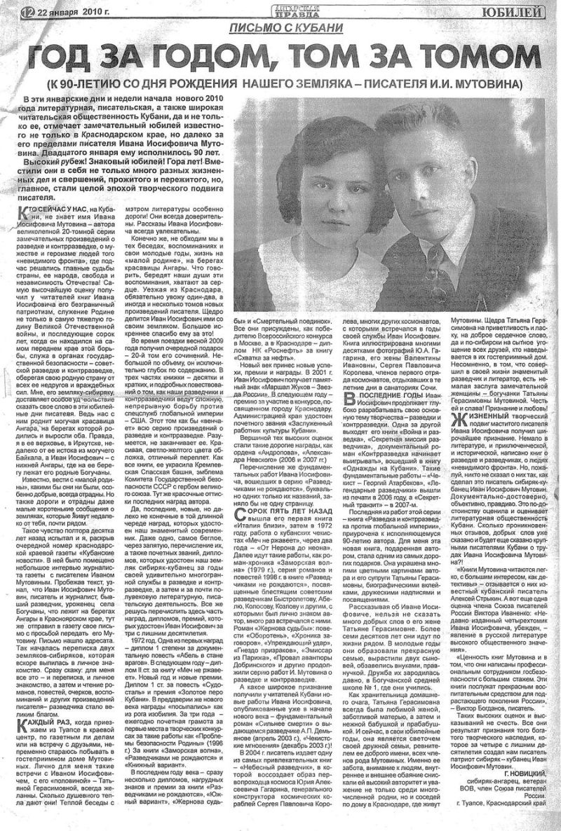Мутовин Иван Иосифович писатель, профессиональный контрразведчик, он более сорока лет отдал службе в органах госбезопасности.