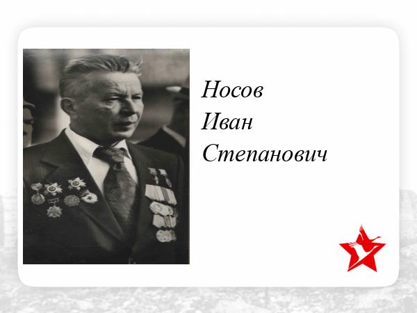 Первую свою награду дед получил 1943 году. На Курской дуге расчёт деда уничтожил 4 немецких танка. Три из них были "тиграми". В октябре 1943 года артиллеристы сержанта Носова форсировали Днепр. Они подбили и подожгли 6 вражеских танков. За эту операцию деду было присвоено звание Героя Советского Союза. Дед прошёл с боями всю Украину.