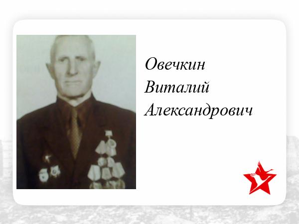 Виталий Александрович с войны вернулся в Семипалатинск, работал на Кожкомбинате слесарем, состоял в Совете ветеранов, был мастером в ФЗУ. Труд Овечкина отмечен знаком «Победитель социалистического соревнования».