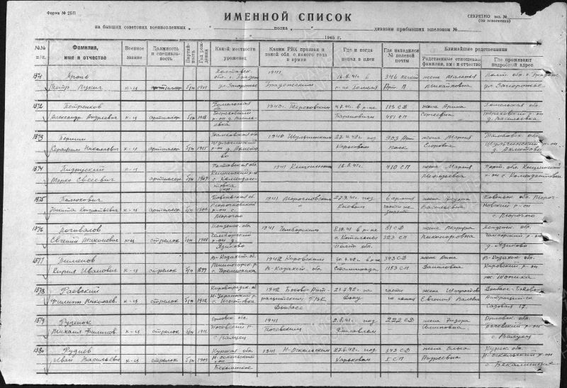 Племен 1942.04.30. Участник Сталинградской битвы.