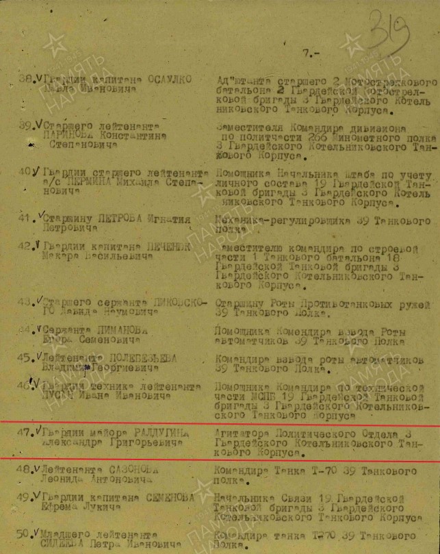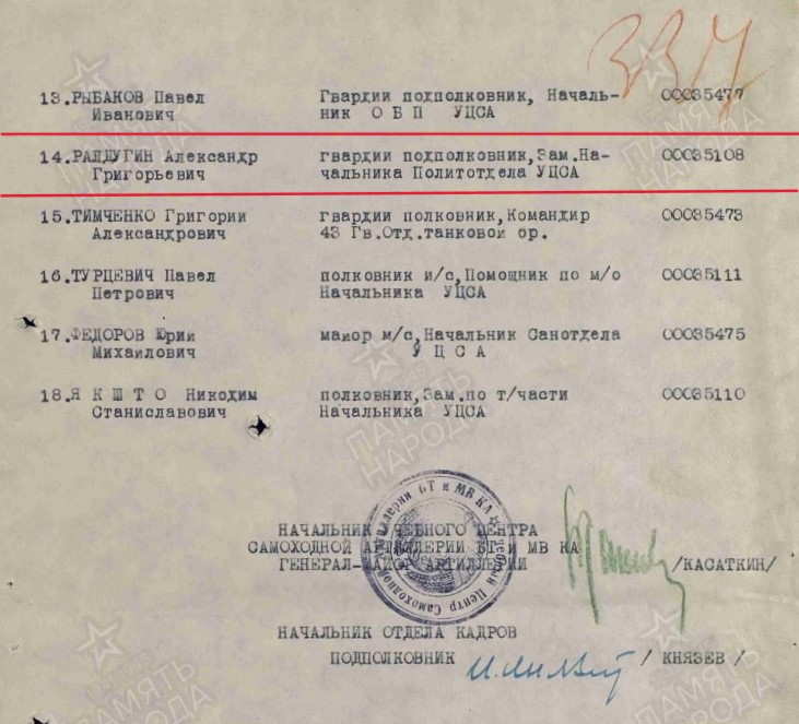 / Агитатор Полит. Отдела 3 Гв. Котельниковского тк; Заместитель Начальника Политотдела УЦСА
