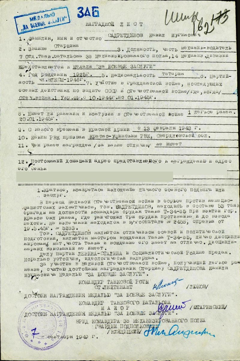 В РККА с 13.02.1943 года Место призыва: Красноуфимский РВК, Свердловская обл., Красноуфимский р-н.
