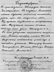 24 июня 1942г. в бою погиб Шкаруппа Степан Захарович. Об этом после войны сообщил его земляк- Часнык Василий Антонович.