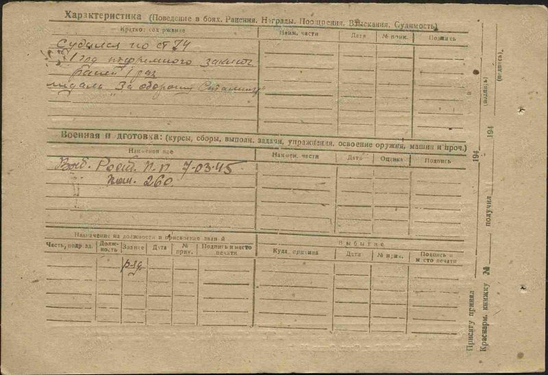 Был ранен, на лечении до марта 1945 г. находился в сочинском госпитале ЭГ 2125.