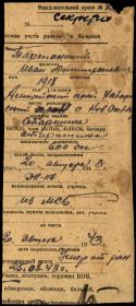Штамп приемно-технической комиссии: Убыл в действующую армию г.Горький 28.01.1942г.