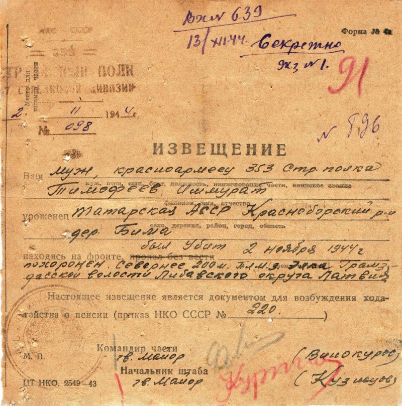 Деда не помню.по рассказам отца.Убит 02.11.1944.Латвия д.Элка.353СП,47СД.
