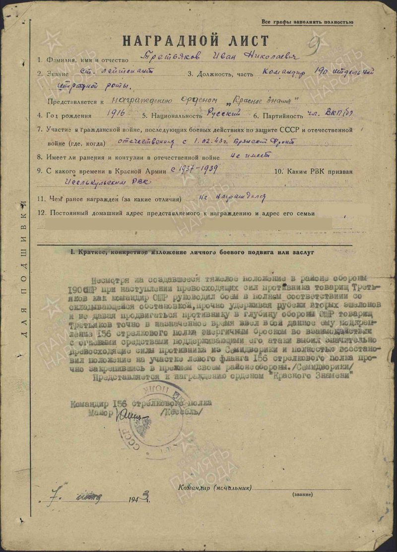 Иван Николаевич Третьяков, командир штрафной роты, Нижнеингашский район: