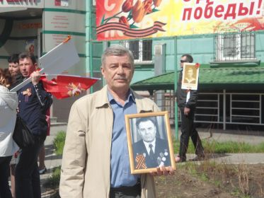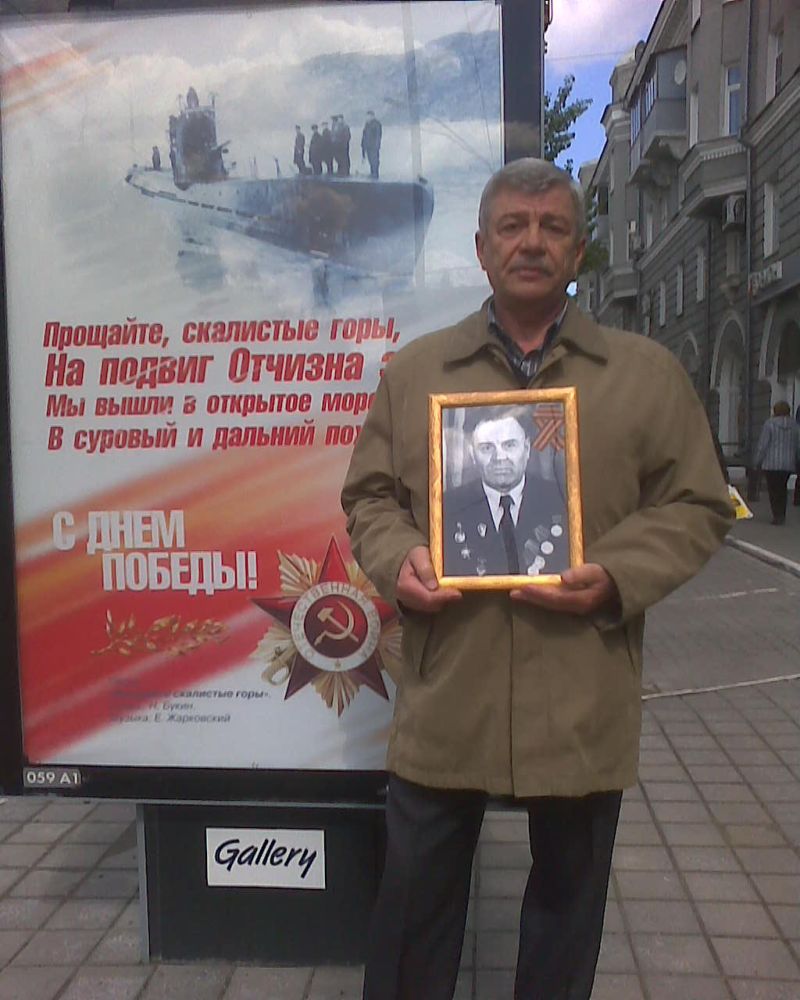 - Это мой отец. Родился в Родинском районе Алтайского края, с. Ярослав-Лог 26.10.1923 г. После окончания школы работал учителем. С июля 1941 г. по октябрь 1941 г. - курсант Кемеровского военно-пехотного училища. В декабре 1941 г. был направлен на фронт.