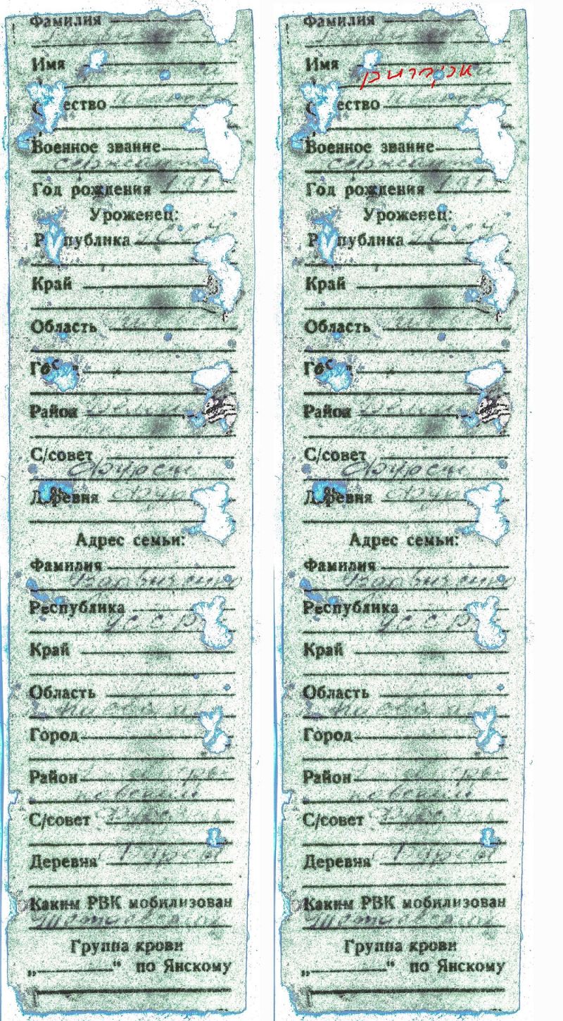 Командир отделения, сержант Вдовиченко Григорий Иванович 1919 г.р. Уроженец: УССР, Киевская обл., Белоцерковский р-н, Фурсинский с/с. д. Фурсы. Призван Тетиевским РВК. Числится в списках 8 стрелковой роты, 576 стрелкового полка как Вдовыченко Г. И. Погиб в Куйсма на перешейке озёр Большое Памятное и Малое Межгорное 03.08.1941г. Найден в 2024 г., опознан по солдатскому медальону. Информация из медальона. По ОБД воин не числится. Похоронен на воинском мемориале №78, п. Лесогорский, Выборгский р-н, Ленинградской обл.