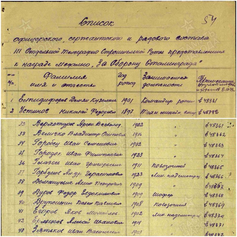 Величко Владимир Осипович (Иосифович), 1916 г. р. Место рождения Красноярский край, Удерейский район. Призван Удерейским РВК в 1942 году. Красноармеец. Линейный надсмотрщик. В/ч 829 олбс., 111 отср. Участник Сталинградской битвы. Награждён медалью За оборону Сталинграда, медалью За Победу над Германией в Великой Отечественной войне 1941-1945 гг.