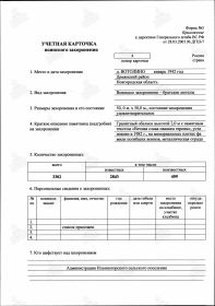 Верхотуров Иннокентий Иванович, 1911 г. р. Место рождения Красноярский край, Богучанский район, с. Богучаны. Призван Богучанским РВК в 1941 году. Красноармеец. Стрелок. В/ч 918 сп 250 сд. Убит в бою 22.05.1942 года. Похоронен Ленинградская область, Демянский район, д. Заозерье, рядом. Перезахоронен Новгородская область, Демянский район, д. Вотолино. В документах допущена ошибка в фамилии- Верхотулин, похоронен под этой фамилией.