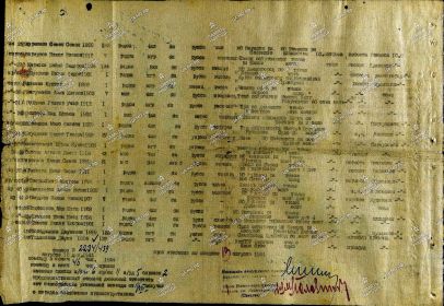 Медаль «За отвагу» Приказ подразделения №3/н от 29.07.1943 г. Издан: 31 гв. ск.