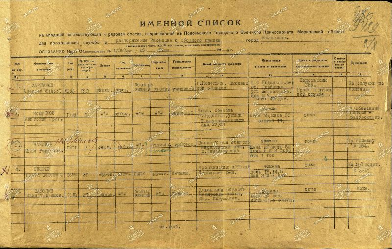Орден Красной Звезды Фронтовой приказ №192/н от 09.06.1944 г. Издан: ВС 4 Украинского фронта.