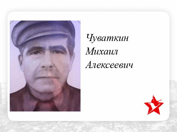 Чуваткин Михаил Алексеевич-красноармеец ЭГ-3682( г.Баку) воевал до победы. Награжден медалью "За Победу над Германией" от 1946г. Этот фронтовик мой односельчанин. Умер в 1979г.с.Коноваловка