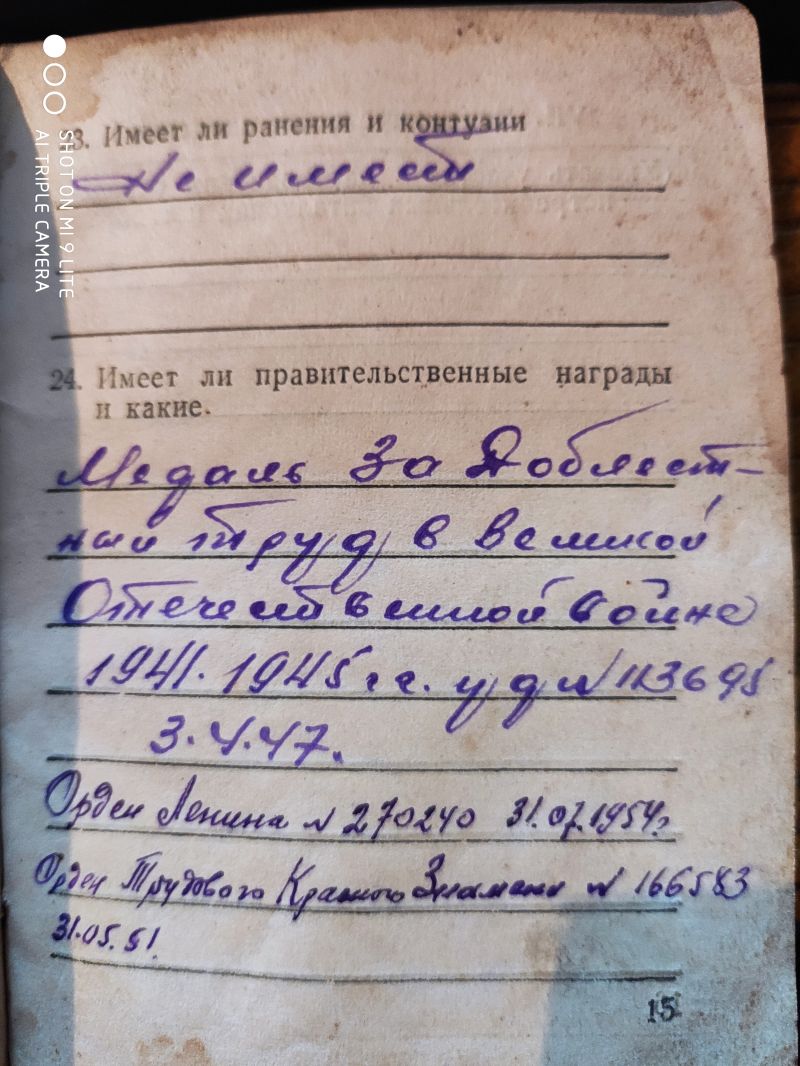 Всю ВОВ трудился на Бикинский железной дороге, мастером. Награждён медалью за доблестный труд в ВОВ & 113695 от 03.04.1947 г., Орденом Ленина &270240 от 31.07.1954 г., Орденом трудового красного знамени & 166583 от 31.05.1951 г.