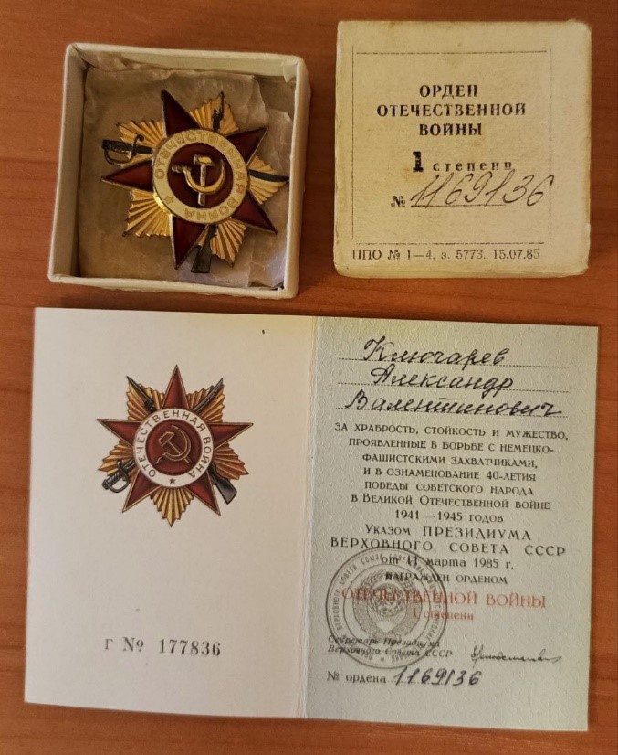 Ключарев Александр Валентинович родился 09.10.1922 г, в г. Омск. Отец – Ключарёв Валентин Александрович (1898-1942), мать – Ключарёва Гликерия (Галина) Ивановна (1896-1976). Александр был самый старший, после него родились: Надежда, Олег, Владимир и Вера. На войну Саша ушел добровольцем в ноябре 1941 г. Но призван был только 13 февраля 1941г. Александр Валентинович начал службу в воздушно-десантном корпусе. Выучку проходил в Подмосковье. Но стать десантником была не судьба. Воздушно десантный корпус реорганизовали в «Гвардейскую сороковую Енакиевско-Дунайскую Краснознаменного ордена Суворова 2 степени» стрелковую дивизию, перебросив под Сталинград. У Александра Валентиновича много наград, но наиболее выдающиеся из них. : «Орден отечественной войны 1 степени», «За победу над Германией в Великой Отечественной Войне», «За оборону Сталинграда», «За отвагу», «За взятие Вены», «За взятие Будапешта», «За освобождение Таврии», «Фронтовик».