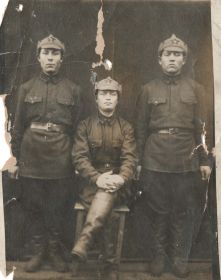 После смерти моего деда, Черноморского Александра Петровича, осталась фотография с пояснением, что съемки осуществлены 30 сентября 1938 года. Здесь сняты три друга с перечислением фамилий, к сожалению, без инициалов: Черноморский, Тюрин, Ксенофонтов. Когда-то дед дарил фотоснимок дяде и тете, поэтому фотография адресована им. Учитывая, что мой дед - крайний справа, предполагаю, что Тюрин тот, кто сидит на стуле, а Ксенофонтов рядом с ним, хотя могу и ошибаться. К сожалению, на сайте “Память народа” установить имен Тюрина и Ксенофонтова и каких-либо подробностей их жизней, не удалось. Возможно их родственники смогут откликнуться и дополнить мой рассказ. Буду рада любым новым сведениям.