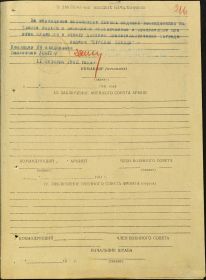 Чтобы не быть связанным с хранением партбилетов, я передал своему заместителю Жандарову бланки не выданных парт документов. И тогда обнаружилось, что одного комплекта парт документов нет, значит, он остался с закопанными бумагами. Потом выяснилось, что не выданный комплект комиссар оставил в папке вместе со второстепенными бумагами, а я, не просмотрев эту папку, оставил ее зарытой в железном сейфике. Закопанными остались и 220 бланков комсомольских билетов. Я понимал, что за это мне придется держать довольно строгий ответ. Так и случилось: из политотдела армии приехал инспектор, выяснять последствия окружения дивизии. Ни с кем, кроме комиссара, он не беседовал, никого из политотдела не вызывал. Скоро меня вызвали на заседание партийном комиссии 41-й армии и вынесли строгий выговор «за непринятие действенных мер при выходе из окружения и оставление на территории врага комплекта партбилетов и 220 бланков комсомольских билетов». Я спросил председателя парт комиссии: «А комиссар и командир понесут какую-нибудь ответственность?» Он ответил, что нет, а после заседания один ответственный работник политотдела, член парт комиссии, сказал мне: «Вы подошли как раз под действие приказа № 227, вот вас и наказали». Я пошел к начальнику политотдела и сказал, чтобы меня убрали из этой дивизии, так как работать с комиссаром и командиром дивизии нет никакого желания. На эту просьбу он ничего мне не ответил.