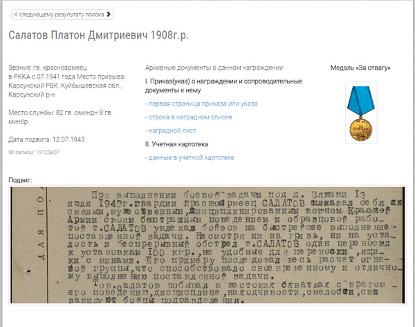 В архивах МО нашлись наградные документы на медаль “за отвагу”: